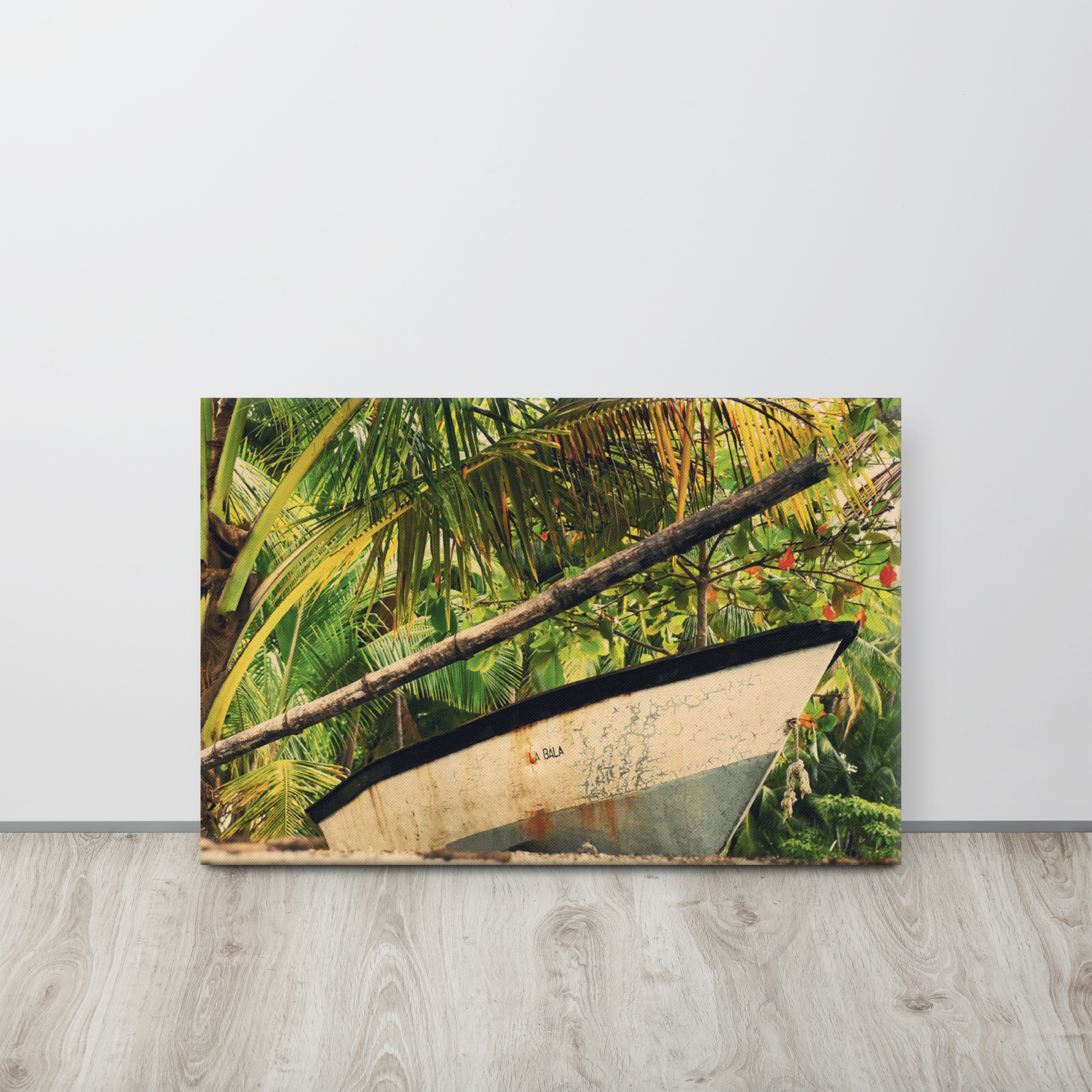 Et dans un salon ? Optimale en format XL au-dessus du canapé ou du meuble TV, aussi près des baies vitrées pour des reflets contrastants, profite des ondes apaisantes du bateau costaricien. Plus audacieux : associée à des couleurs plus vives commme l’orange et le bleu, la toile imprimée nature se retrouve challengée et complémentée, de par ses tons verts. Toujours au sein d’une déco aux accents de la nature, de type Boho, épurée ou rustique, pour mettre en valeur la relaxation et le retour à la simplicité !