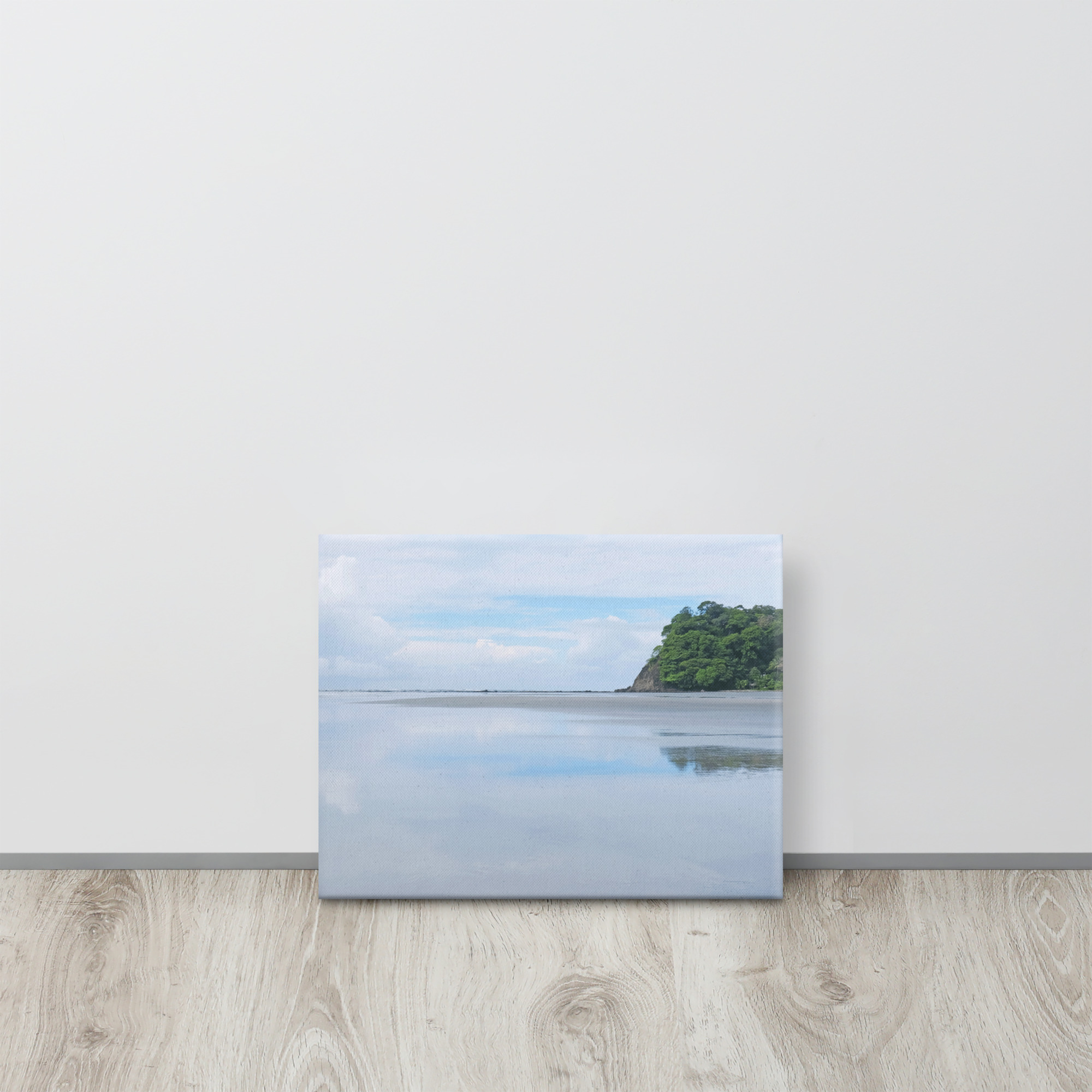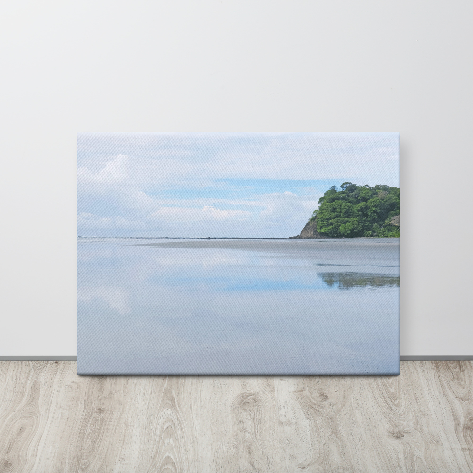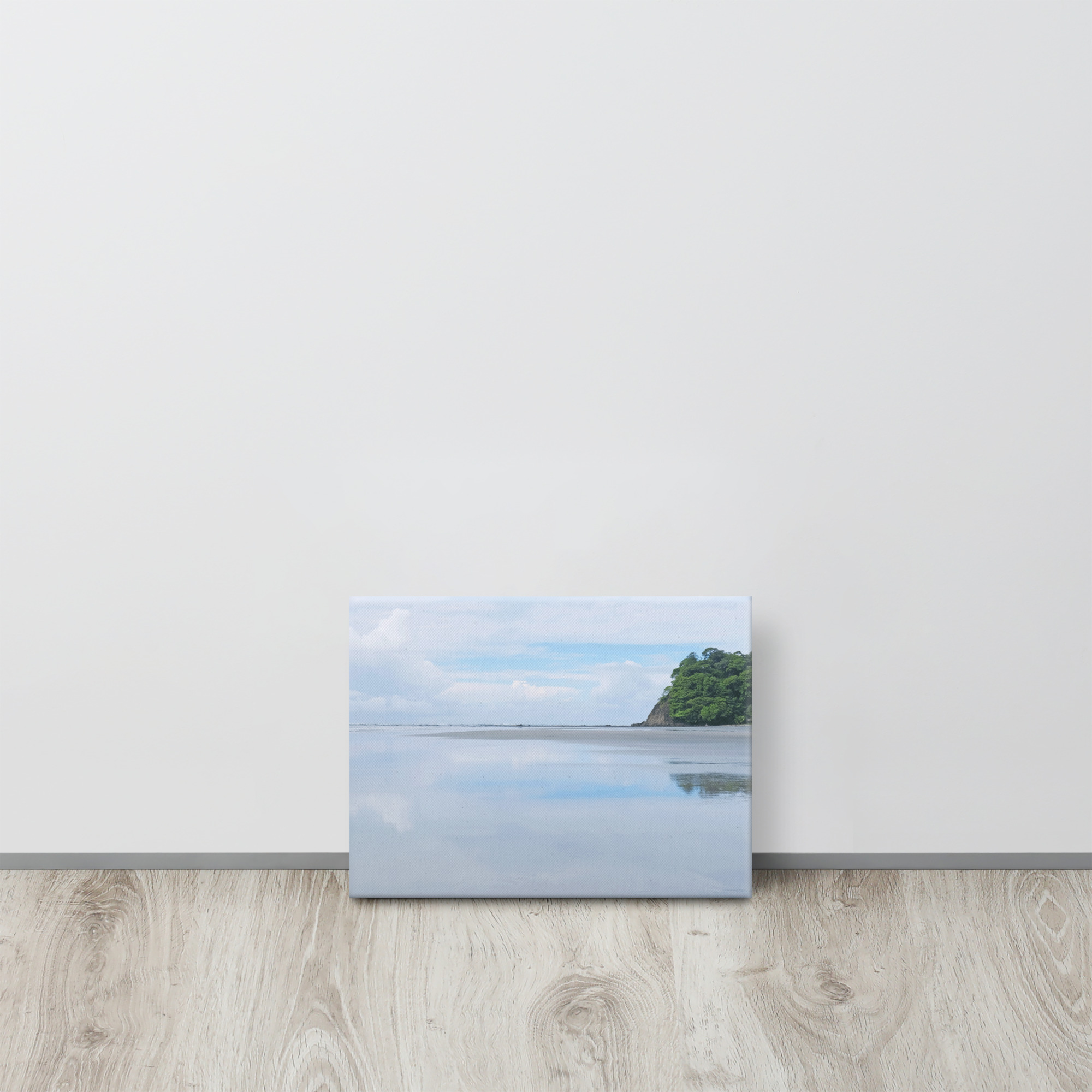 Un design unique avec une de mes photos de voyage au pays des paresseux – le Costa Rica. Crée un intérieur confortable et apaisant, pour laisser ton esprit vagabonder et le calme venir à toi. La photo d’art de cette toile imprimée paysage a été prise sur la plage de Samara, cote Pacifique du Costa Rica, pendant mon voyage en solo et comme digital nomade en Amérique centrale, en 2024. La marée s’était retirée, donnant ce reflet étendu du ciel et des nuages sur le sable. Une scène presque irréelle, la rencontre entre la Terre et le Ciel, qui m’a parue parfaite pour capturer ce moment de communion et zénitude avec la Nature. Ce qui compte ? L’instant présent comme il est, ni plus ni moins. Nous avons édité la photo d’art pour faire de ce tableau toile imprimée une pièce maitresse d’une série de déco murale minimaliste.